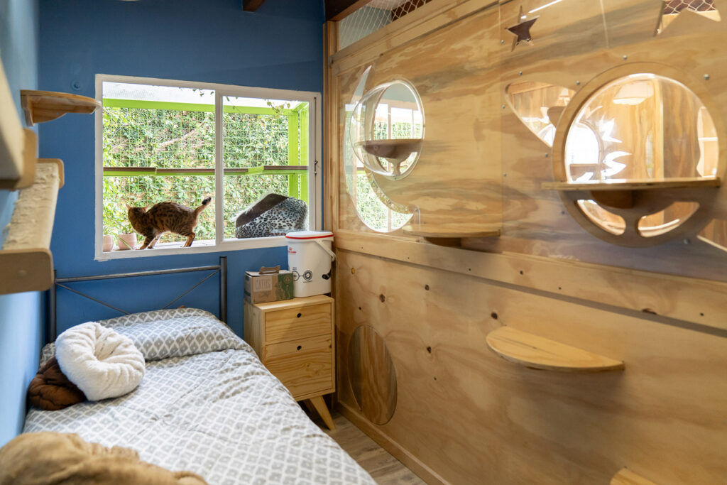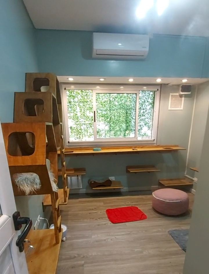 Espacio gatos está en el barrio porteño de Chacarita. Cuenta con suites individuales que con cada nuevo huésped son aspiradas y desinfectadas con lámpara de ozono y luz ultravioleta. Todos los días se envían mensajes por WhatsApp con fotos y videos de la estadía para que las familias puedan ver cómo sus gatitos pasan sus vacaciones. Amenidades: arena sanitaria premium, aire acondicionado frío/calor y ventiladores, agua purificada para beber, cepillado de pelo y limpieza de ojos para las razas que lo requieran. Los michifuses están acompañados las 24 horas y Margaret, veterinaria y fundadora de Espacio Gatos, duerme en el hotel para estar siempre cerca.